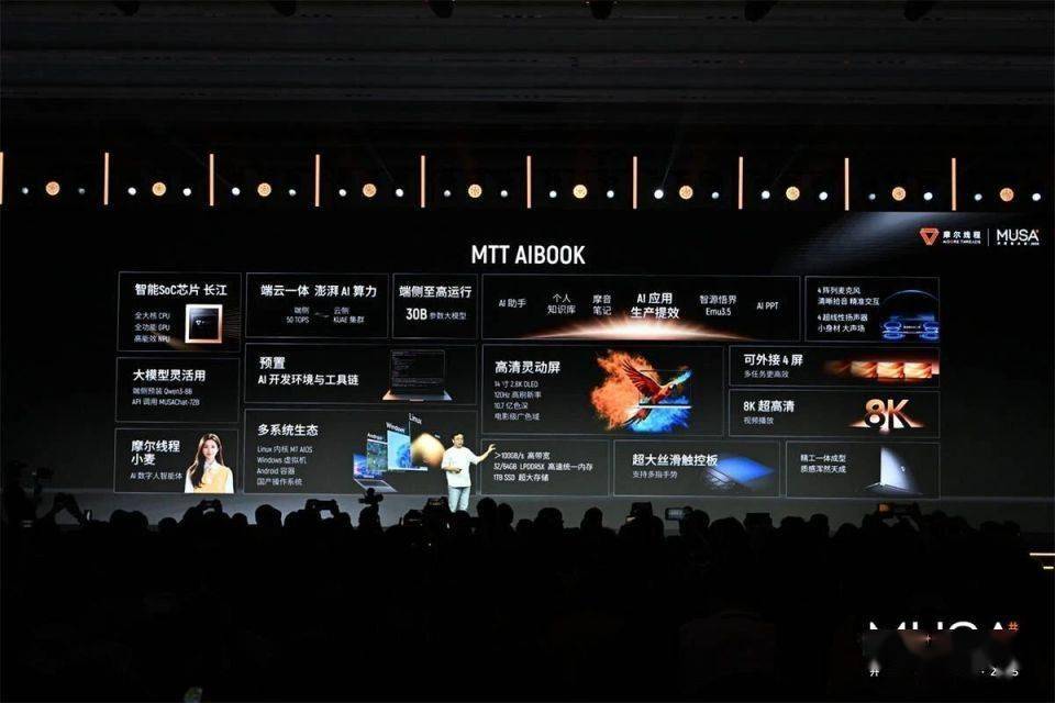 针对个人用户侧,摩尔线程带来了搭载自研“长江”智能SoC的MTT AIBOOK,它提供高达50TOPS的端侧AI算力,首次实现从芯片、驱动到开发环境的全栈整合。还有MTT AICube这款迷你型计算设备,它也是基于“长江”SoC打造的。