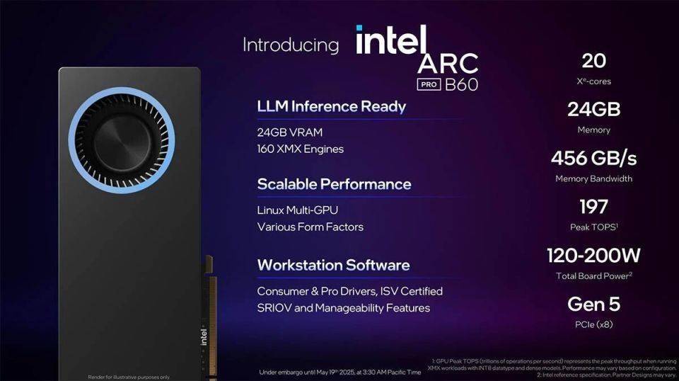 英特尔在Computex 2025上发布了ARC PRO B系列专业级显卡,采用最新的Xe2架构GPU,搭载英特尔XMX AI核心和先进的光线追踪单元,为创作者、开发者和工程师提供强大的性能支持。