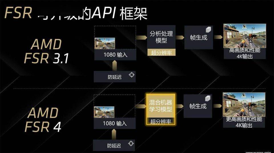 FSR 4基于机器学习驱动,相比FSR 3.1在图像质量上有着明显的提升。也因为需要FP8支持,所以它是Radeon RX 9000的独占功能,至少官方层面上是这样子。