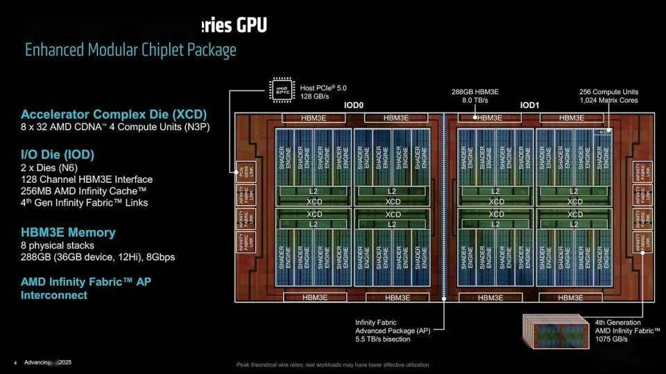 AMD在6月13日正式发布CDNA 4架构及Instinct MI350系列GPU,新架构在计算密度、能效比和内存带宽方面相比上代产品有显著的优化,同时支持灵活的硬件分区和开放的生态系统,为生成式AI和大语言模型训练与推理带来突破性的性能提升。