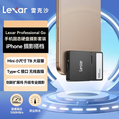 点评:雷克沙 Professional Go 是一款专为摄影师设计的移动固态硬盘。其2TB的超大容量,让你可以存储大量高清图片和视频。采用最新的Type-C接口,数据传输速度高达1050MB/s,大幅提升工作效率。防尘防水的设计确保了数据安全,即使在恶劣环境中也能安心使用。