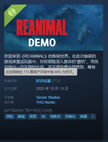 当《小小梦魇3》只满足于复制过去成功的表面元素时,《Reanimal》却选择深入探索恐惧的本质,重新点燃了那种让玩家又爱又怕的游戏体验。这种差异,最终在玩家评价与市场反应中得到了清晰的体现。