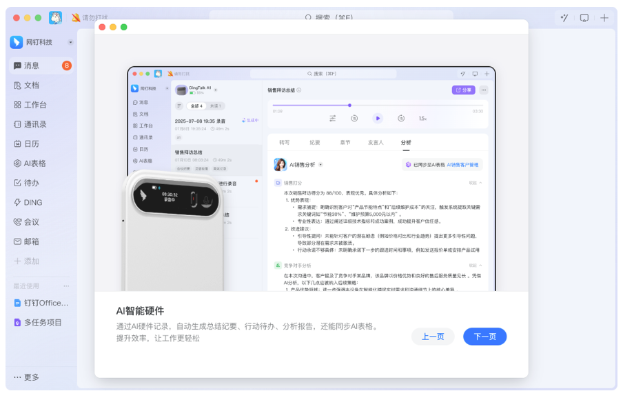 钉钉DingTalkA1以“办公小助理”为核心定位,通过“软硬一体”的全场景解决方案,从线下跨国商机沟通的核心场景创造高质量数据资产,为未来全球智能应用奠定基础,是全球化企业商机管理的核心优选;