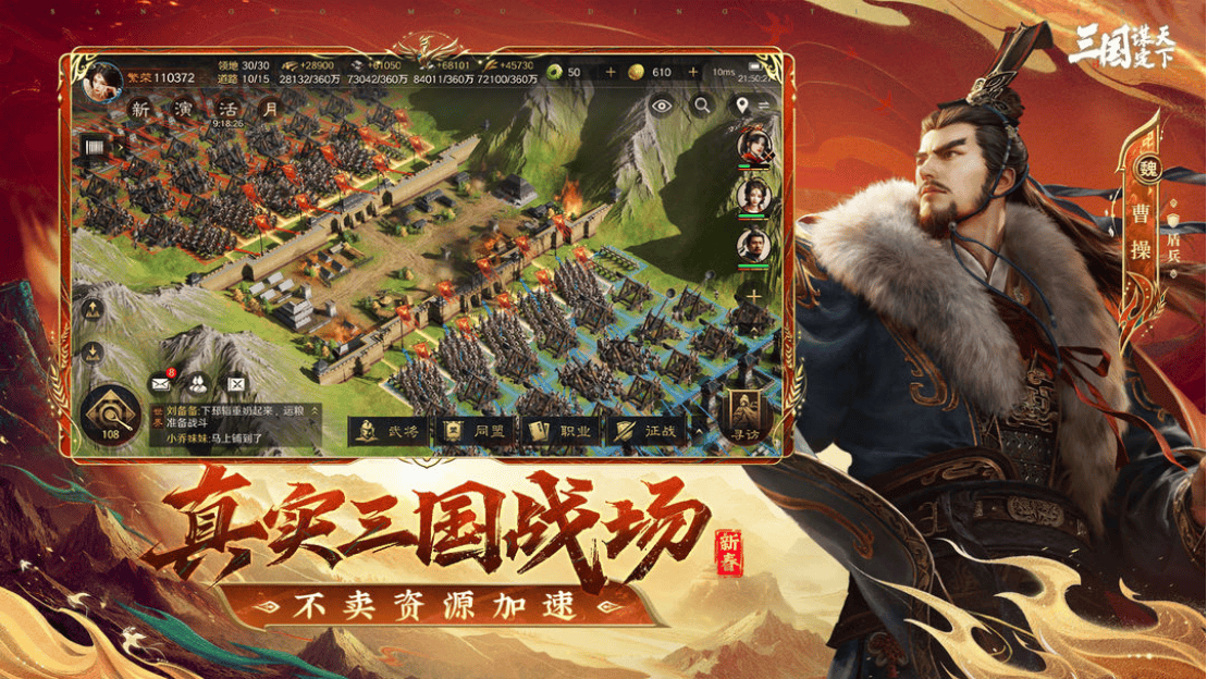 这款2026年现象级手游彻底打破了策略游戏=复杂烧脑的刻板印象。创角即送强力橙将徐盛,次日登录解锁孙策,累计签到还能抱走貂蝉,前七天更有125抽+2480黄金的豪华福利,资源丰富到新手期完全不用担心卡关。最贴心的是游戏将操作压力降到最低:自动铺路功能让领地扩张告别繁琐点击,主城自带资源地和练兵所,就算每天只上线分钟也能稳步发展。